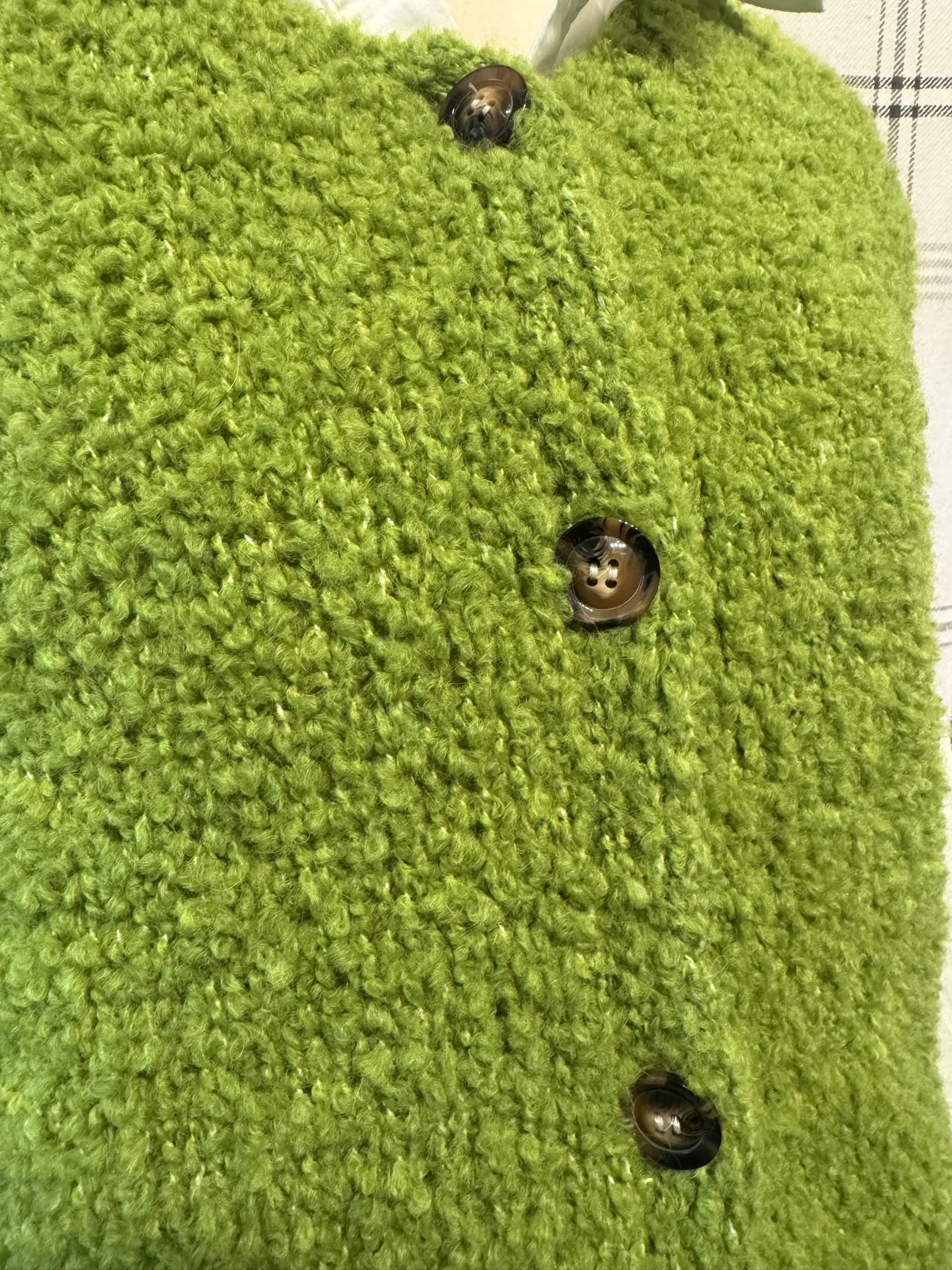 Add effortless texture and warmth to your outfit with this gorgeous teal bouclé waistcoat. Crafted in a soft, teddy-style fabric, this sleeveless layer is perfect for styling over shirts, blouses, or knitwear for a cosy yet chic look. Featuring a classic round neckline and statement button fastening, it’s an easy throw-on piece that instantly elevates any outfit.