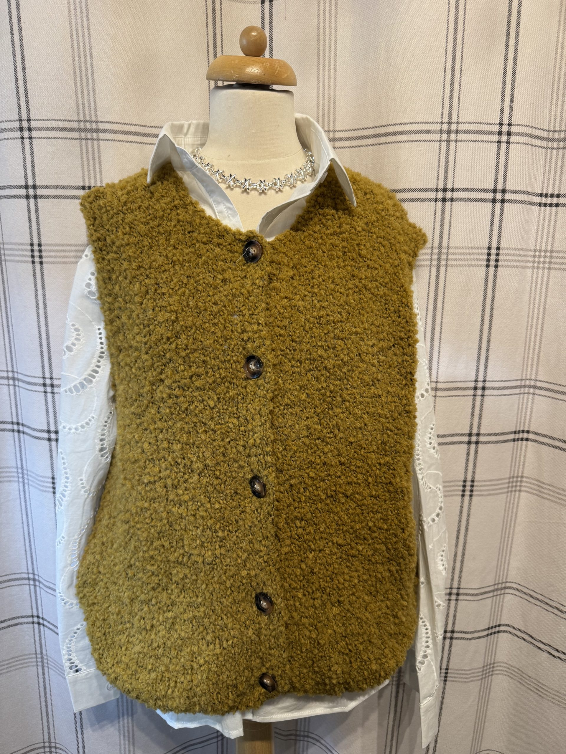 Add effortless texture and warmth to your outfit with this gorgeous teal bouclé waistcoat. Crafted in a soft, teddy-style fabric, this sleeveless layer is perfect for styling over shirts, blouses, or knitwear for a cosy yet chic look. Featuring a classic round neckline and statement button fastening, it’s an easy throw-on piece that instantly elevates any outfit.