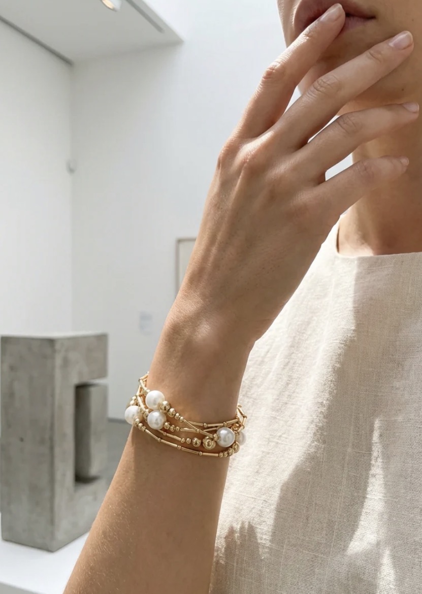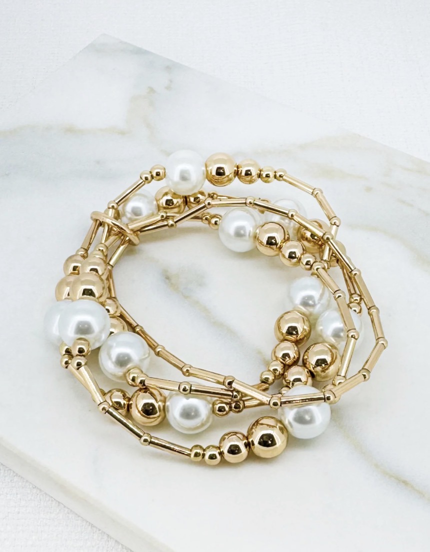 Envy Pearl stretch bracelet cluster with gold