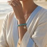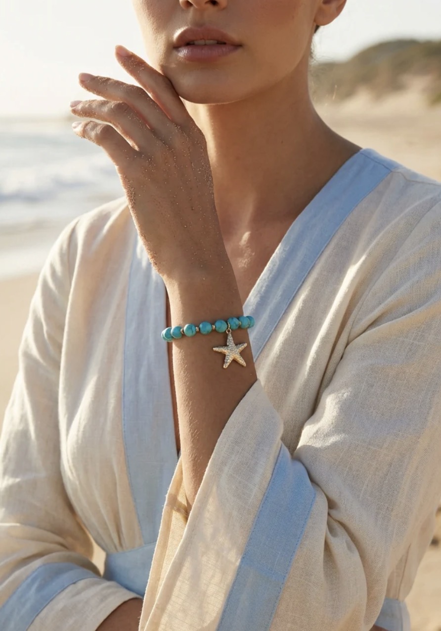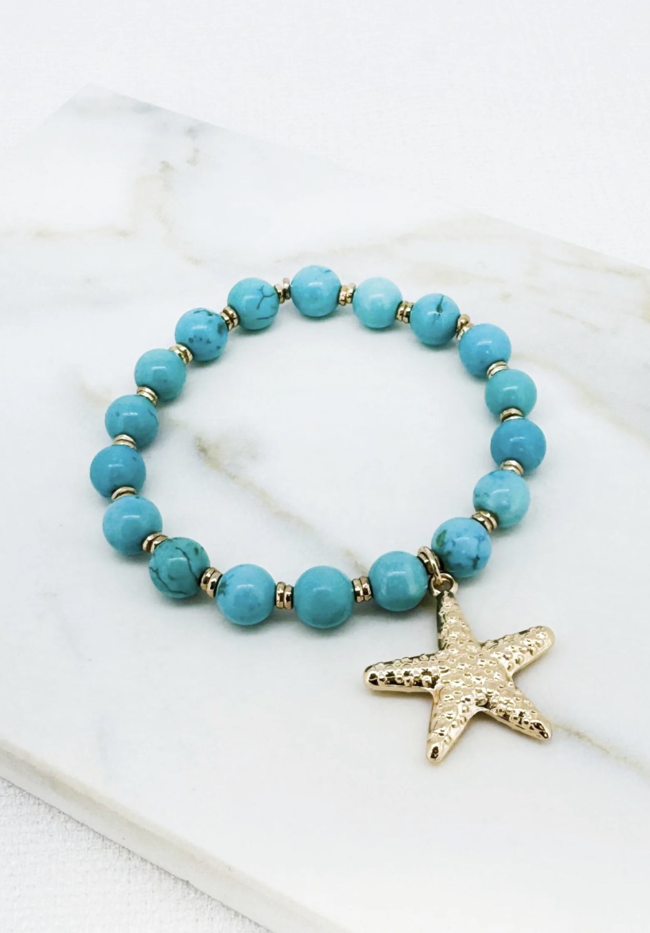 Envy Turquoise bead stretch bracelet with gold starfish charm