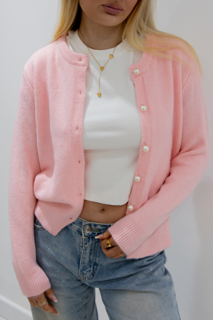 Last True Angel Pearl Button Cardigan in Soft Pink