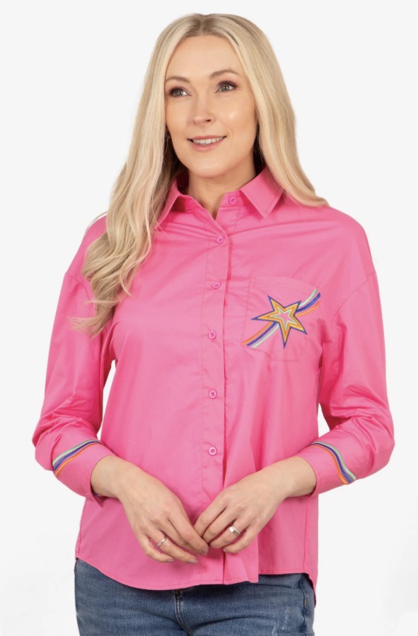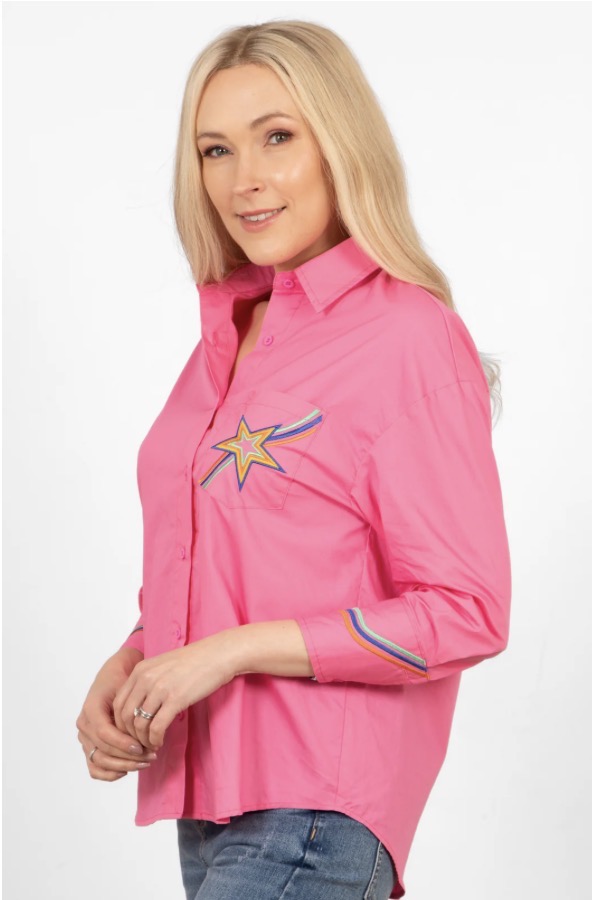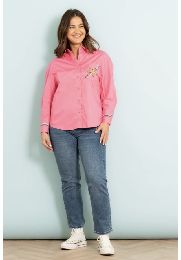 Hot Pink Blouse with Embroidered Detail