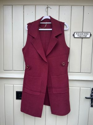 Longline Lapel Waistcoat in Burgundy