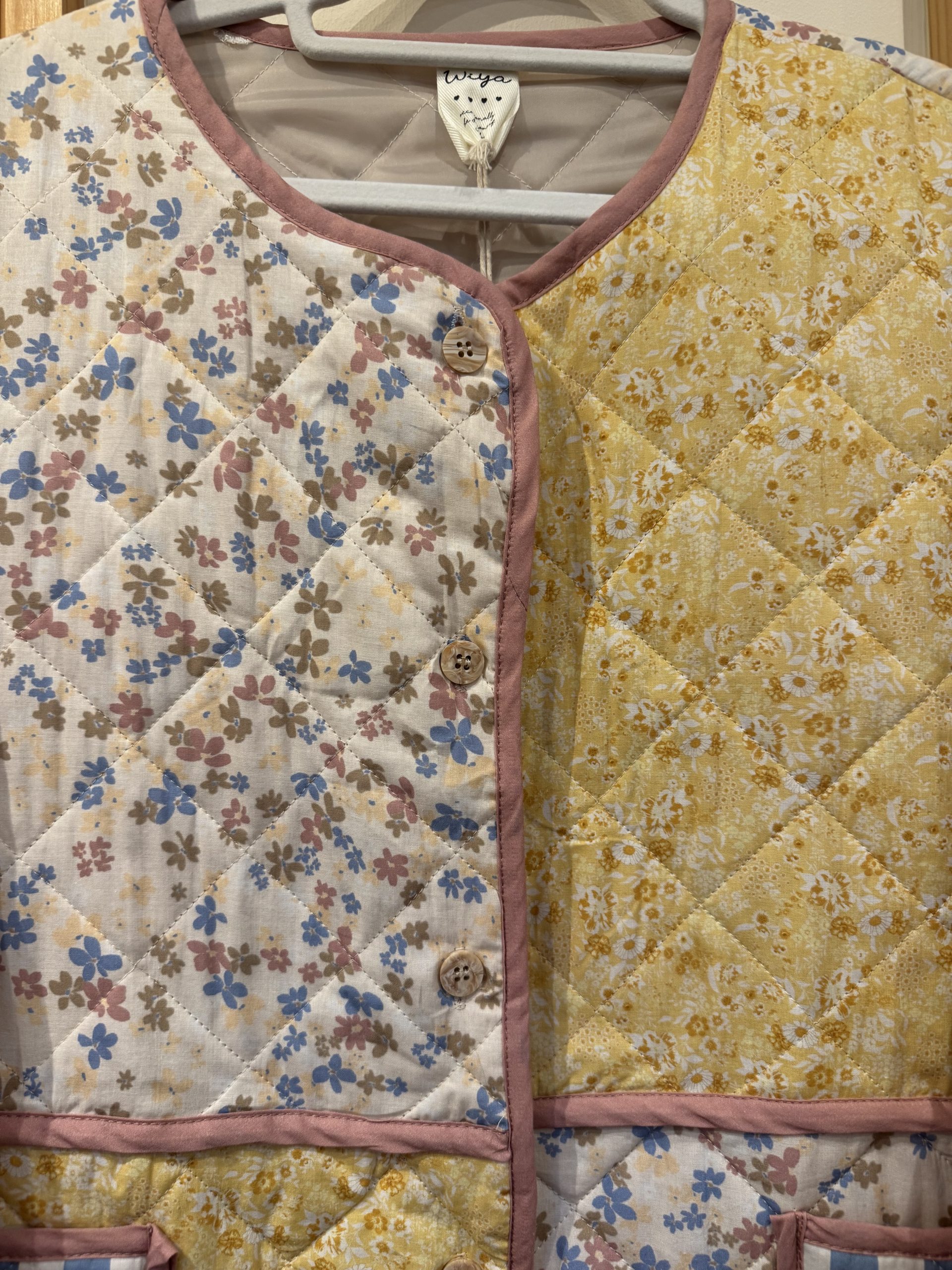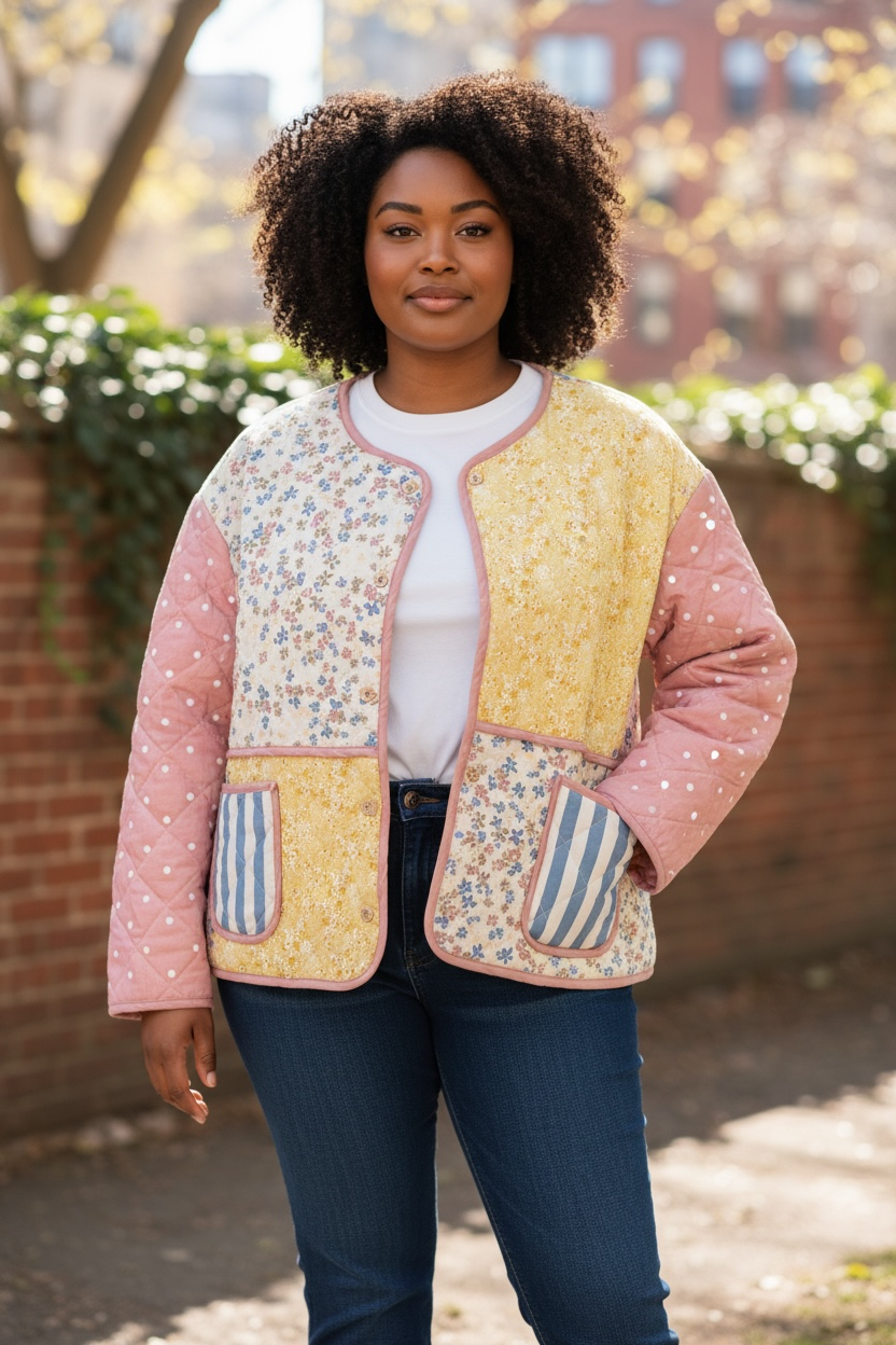 Boxy Quilted Ditsy Floral Lightweight Jacket in Pink/ Yellow
