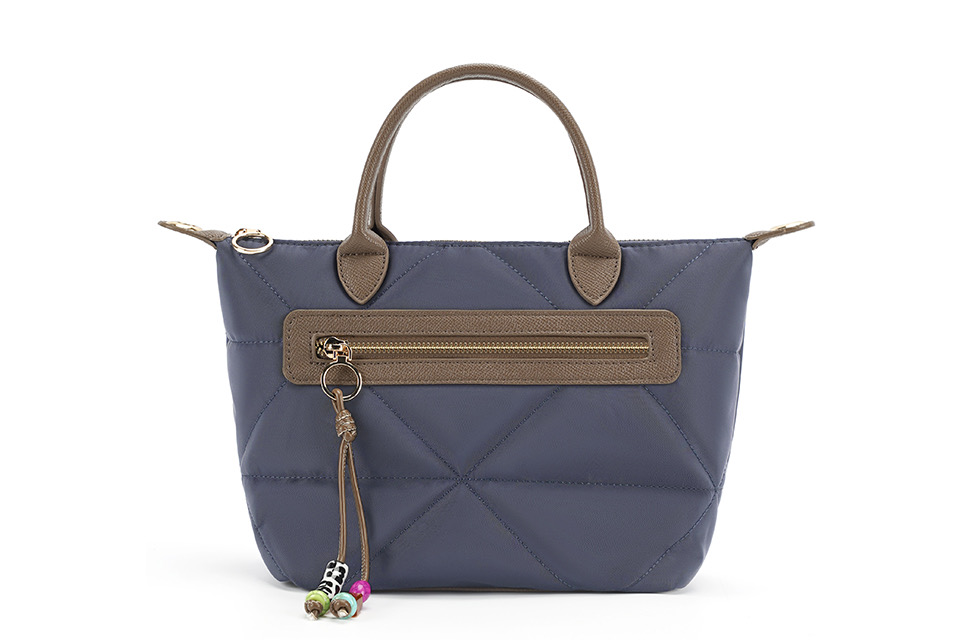 Quilted Fabric Cross Body Handbag in Grey/ Blue
