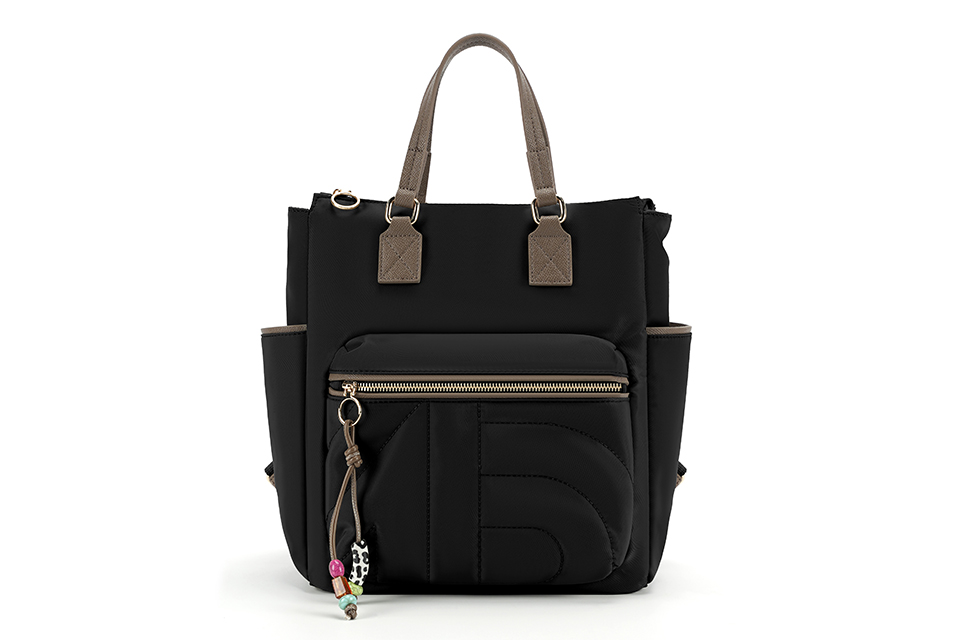 Quilted Fabric Rucksack in Black