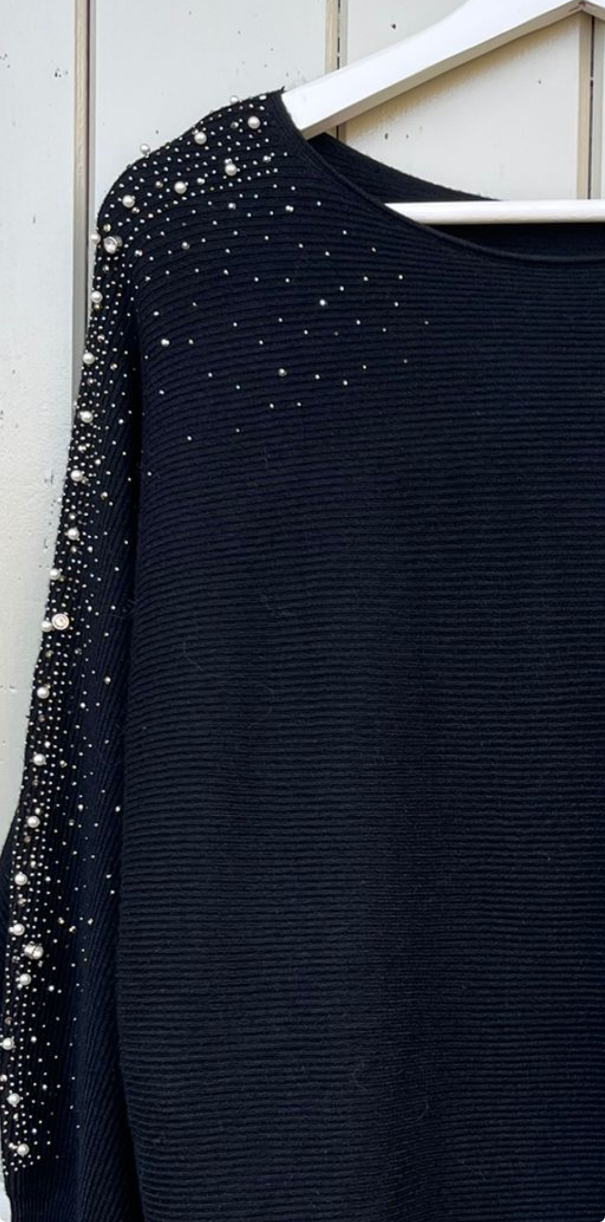 Sparkle & Pearl Sleeve Detail Jumper in Black