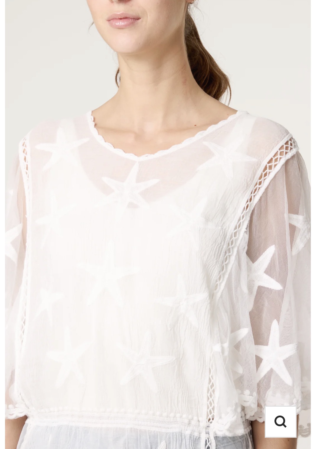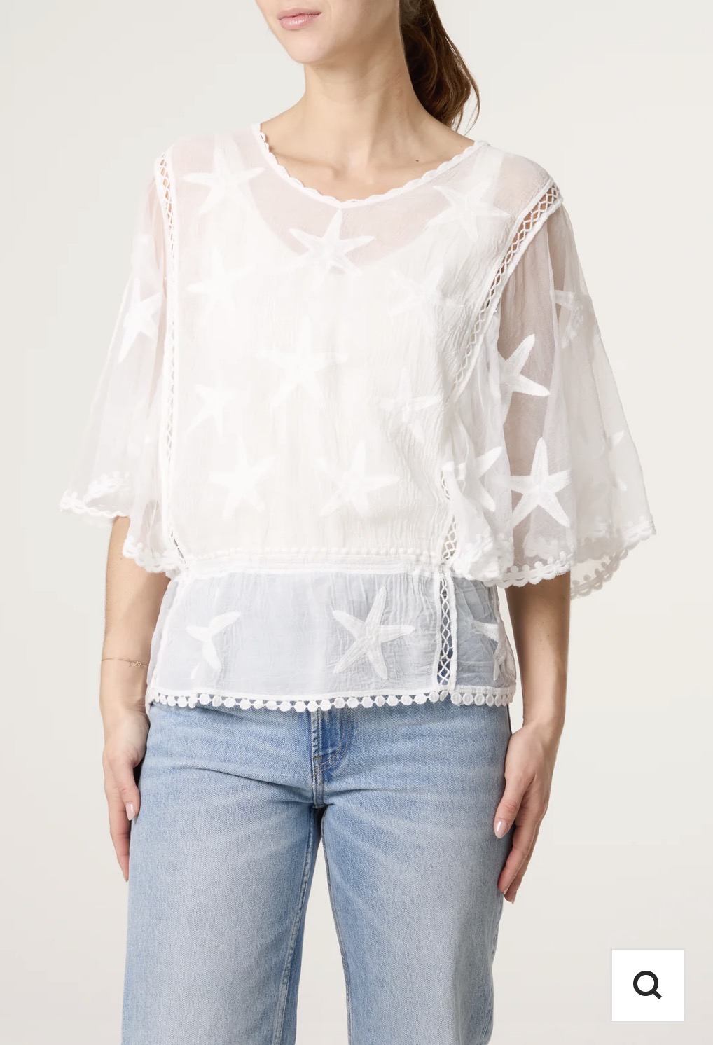 Starfish Lace Sleeve Blouse in White (Size S/M)